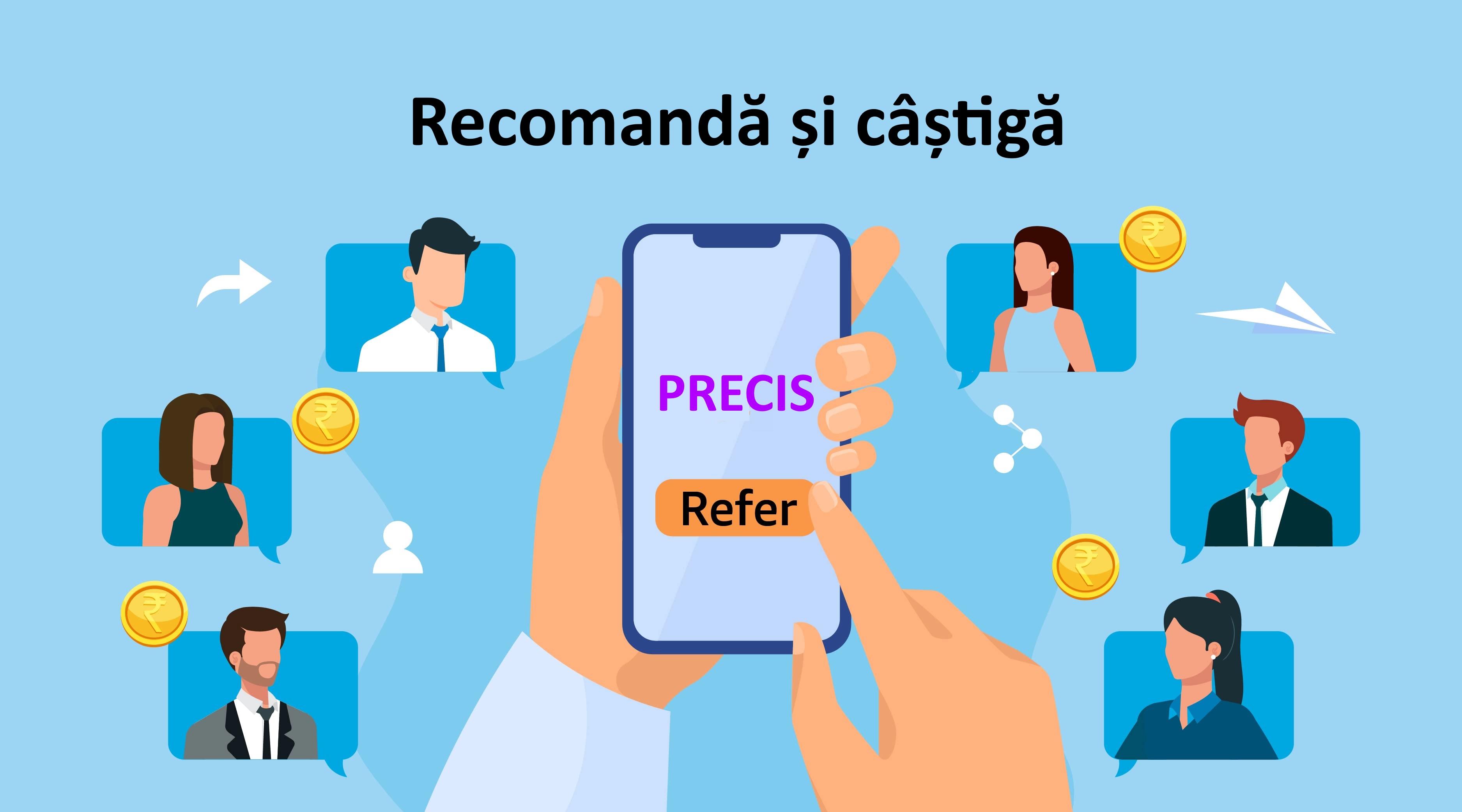 Într-o lume în care colaborarea și sprijinul reciproc sunt tot mai valorizate, comunitatea Precis a introdus un mecanism inovator de referal, care aduce beneficii atât celor care recomandă, cât și celor recomandați. Acest sistem ingenios promovează interacțiunea și solidaritatea între membrii comunității, oferindu-le posibilitatea de a-și extinde rețeaua de contacte și de a obține beneficii tangibile în schimb.